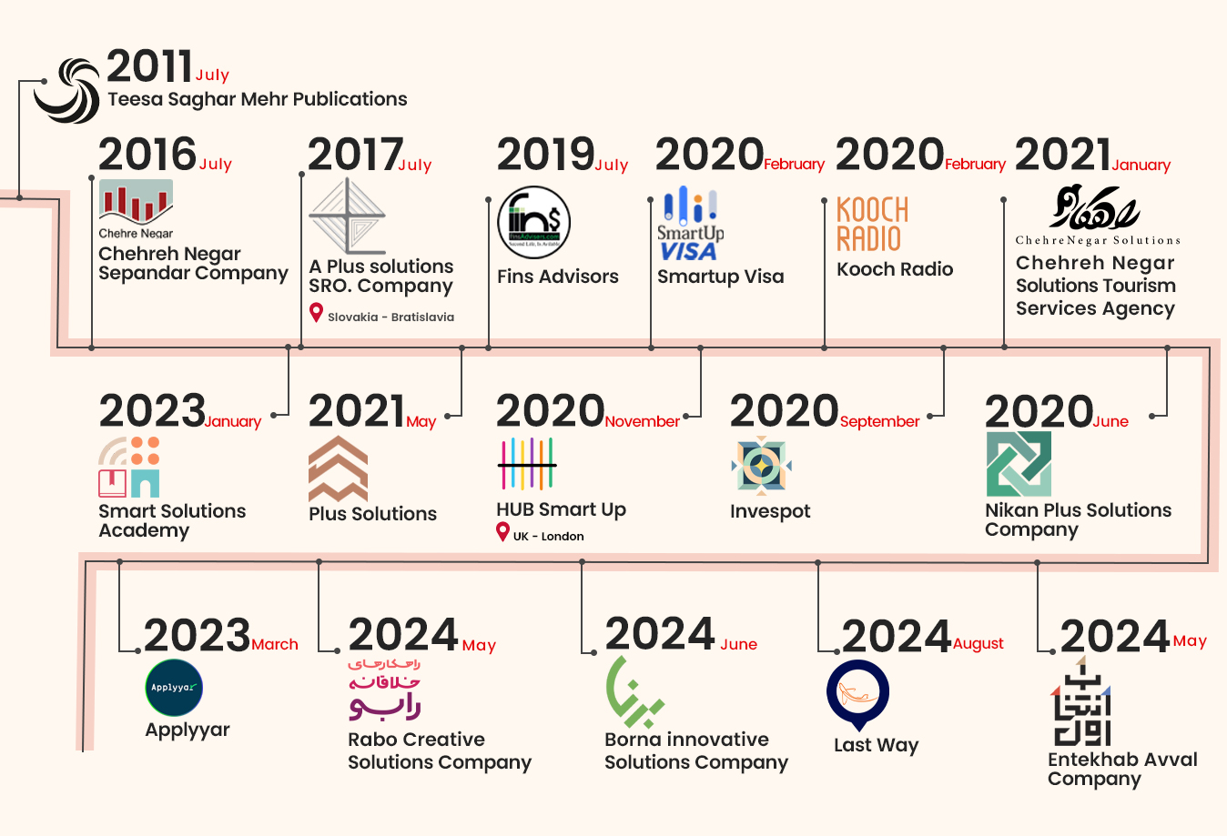 The first company within the A Plus Solutions group was Tisa Publishing, established in 2012. Chehre Negar Monitoring Institute in Iran (established in 2015) and A+Solutions in Slovakia (established in 2018) were the second and third companies registered in this group, respectively.